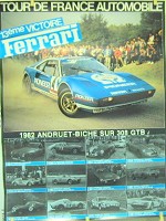 1982 FERRARI 308 GTBI AU TOUR DE FRANCE AUTO ANDRUET BICHE AFFICHE ORIGINALE EN BAS LES VICTOIRES DE 1951 A 1981