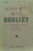 1933-11 BERLIET VILX 4 CYLINDRES 9 CV A SOUPAPES EN TETE LIVRET D'ENTRETIEN N°505