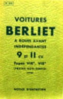 1934-4 BERLIET 9 ET 11 CV VIR9 VIR11 FREINS DUO SERVO LIVRET D'ENTRETIEN N°510