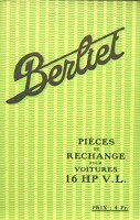 BERLIET 16 HP VL CATALOGUE DE PIECES DETACHEES