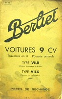 1934-9 BERLIET 9 CV TYPE VIP CATALOGUE DE PIECES DETACHEES