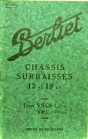 1933-5 BERLIET 12 ET 19 CV TYPE VRCS ET VRC CATALOGUE DE PIECES DETACHEES