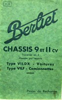1934-4 BERLIET 9 ET 11 CV VILDX VOITURES ET VILF CAMIONNETTE CATALOGUE DE PIECES DETACHEES