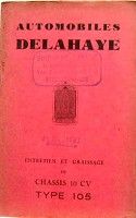 DELAHAYE CHASSIS 105 10 HP LIVRET D'ENTRETIEN