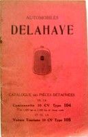 DELAHAYE CHASSIS 105 -104 10 CV CATALOGUE DE PIECES DETACHEES