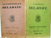 1929 DELAHAYE CHASSIS 109 9 HP LIVRET D'ENTRETIEN ET CATALOGUE DE PIECES DETACHEES AU CHOIX