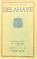 DELAHAYE 64N 12-16 HP LIVRET D'ENTRETIEN