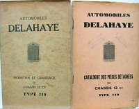 1931 DELAHAYE CHASSIS 110 12 HP LIVRET D'ENTRETIEN ET CATALOGUE DE PIECES DETACHEES AU CHOIX